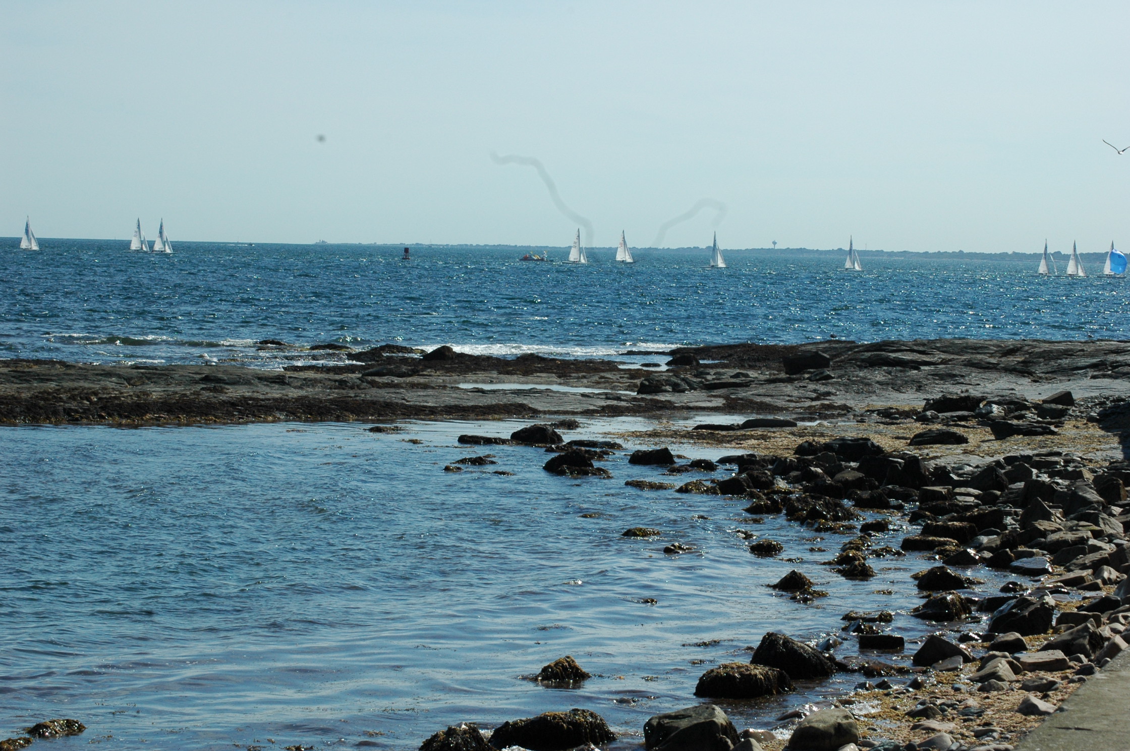 The coast off Newport, R.I., one of the two towns co-founded by William Dyer. Dyer Island is northwest of here.